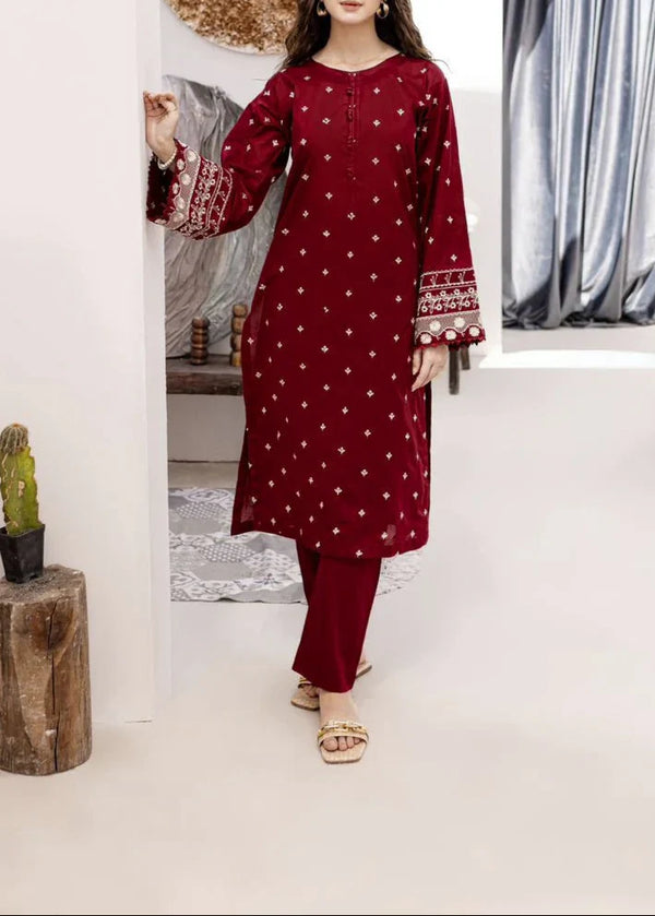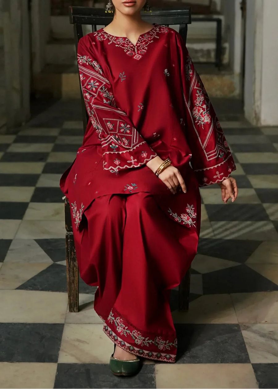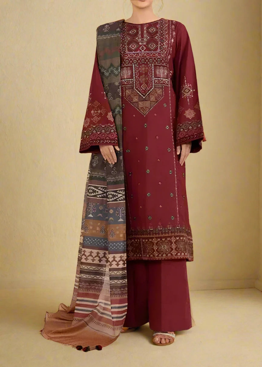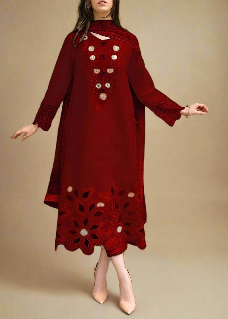 Grace Z - (SCARLET) - Stitched Embroidered Chiffon 3PC Suit.