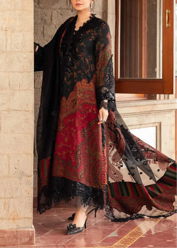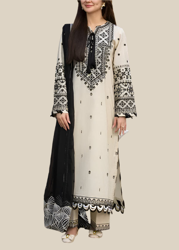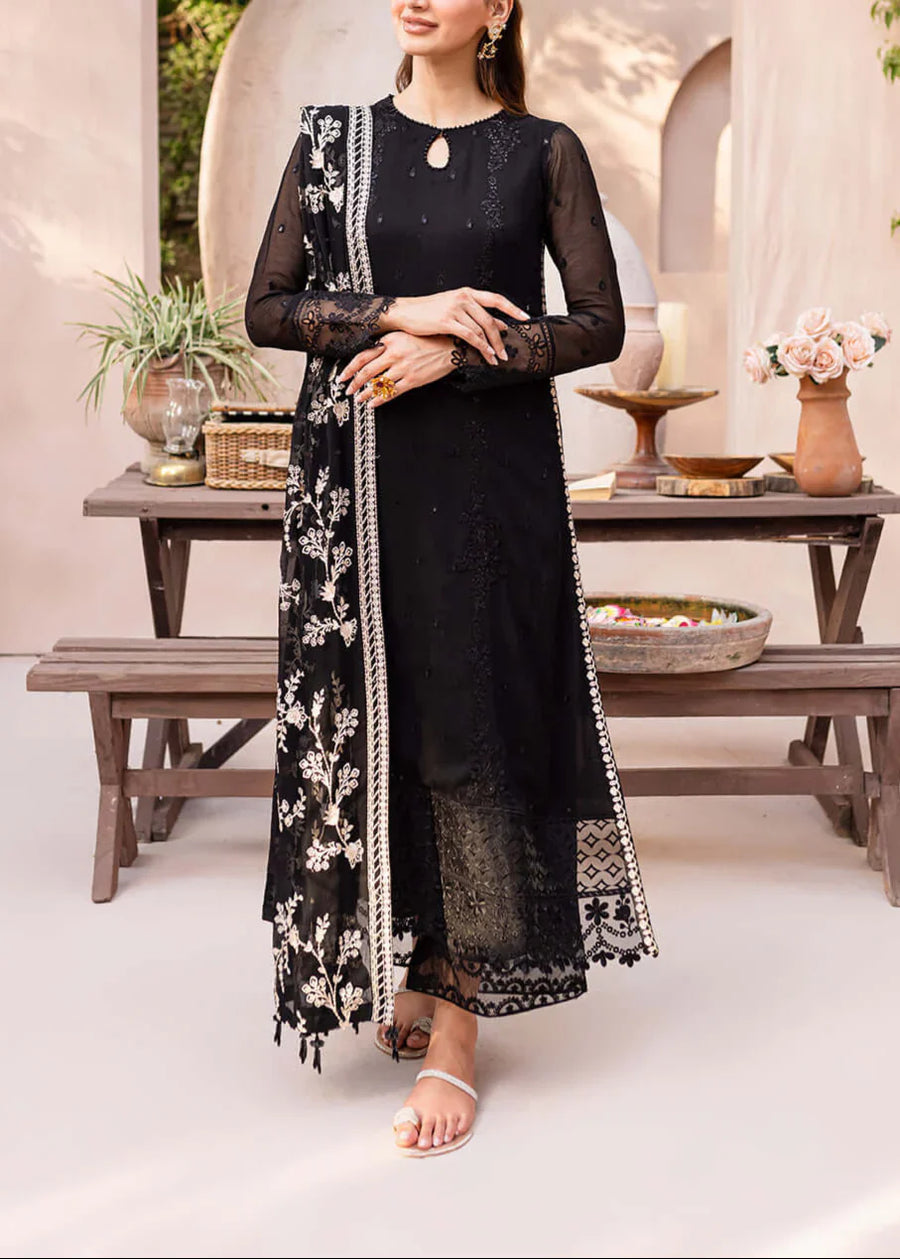 Grace Z-(COLD BLACK) -Stitched Embroidered chiffon 3Pc Suit