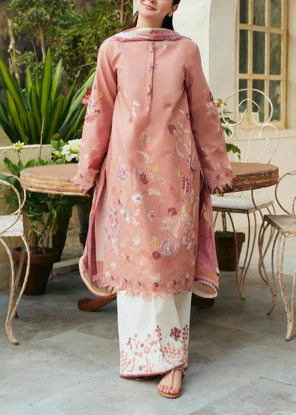 Grace Z(PEACH PETAL) - Stitched Embroidered Chiffon 3PC Suit.