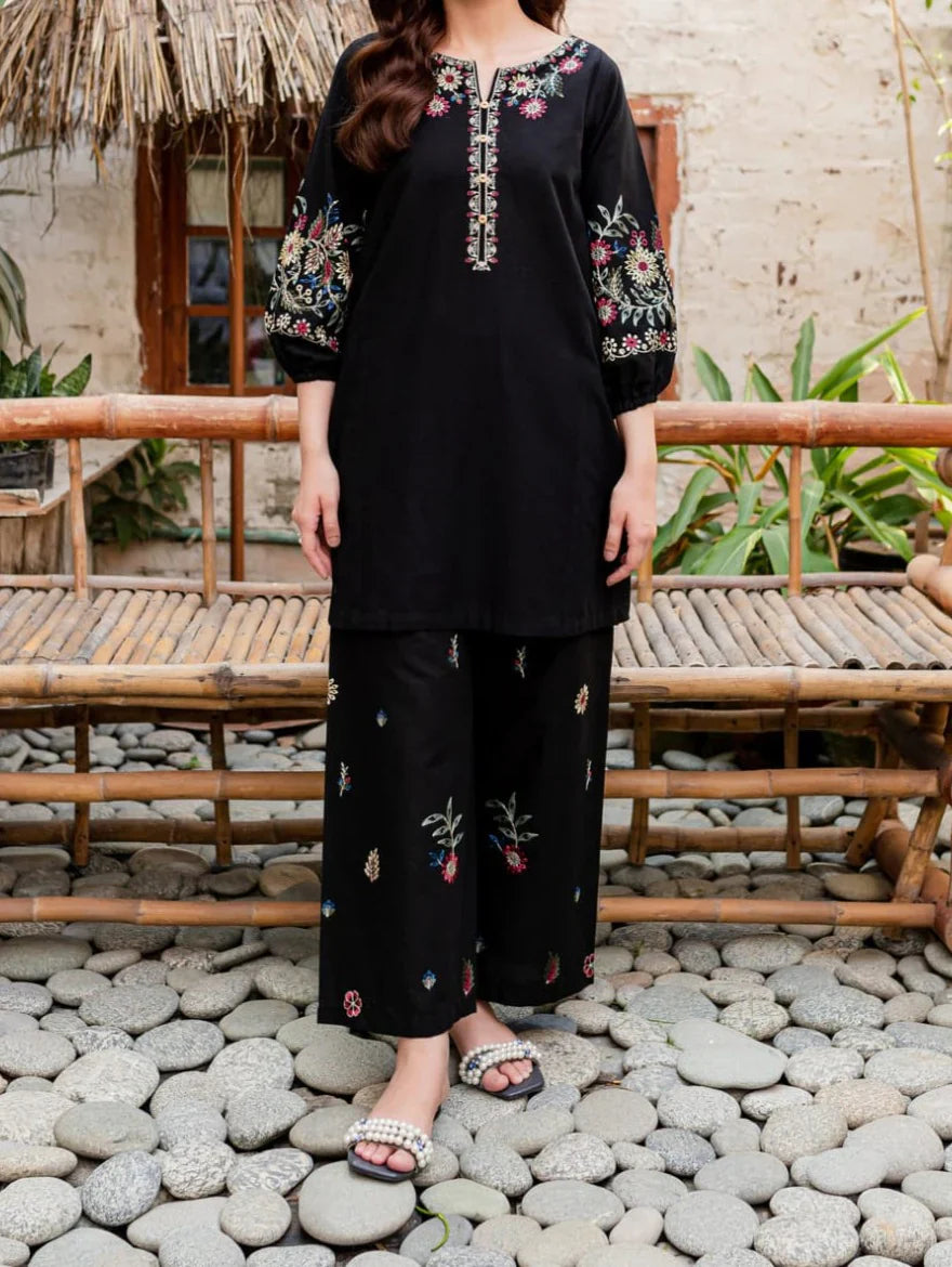 Grace Z-(Siyaah) -Stitched Embroidered chiffon 3Pc Suit