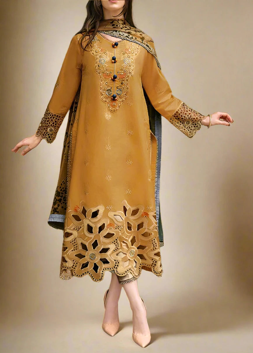 Grace Z-(W104)- Stitched Embroidered 3PC Marina Dress with Embroidered Marina Shawl.