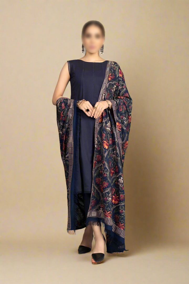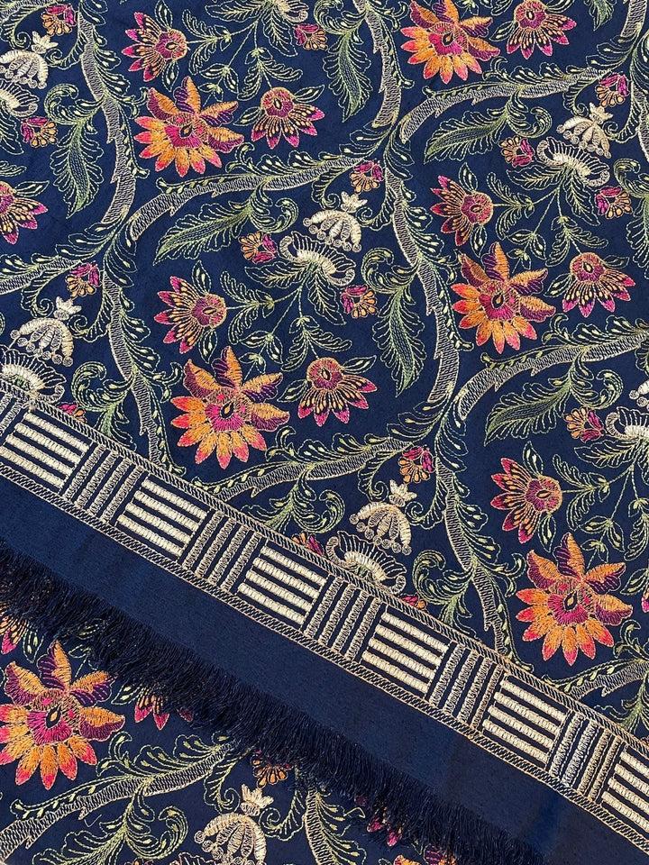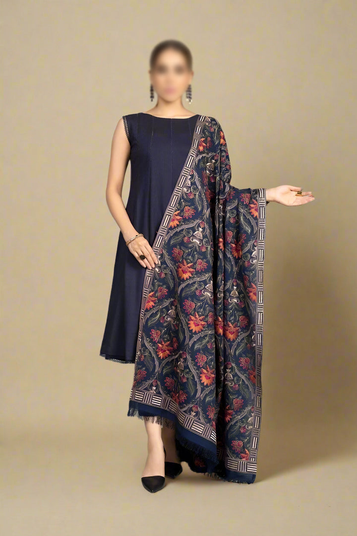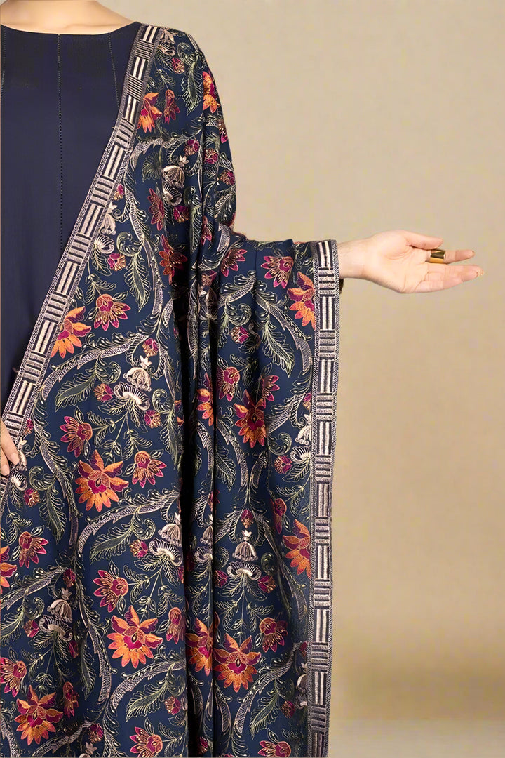 Grace premium D49- Embroidered Karandi Navy Blue Shawl.