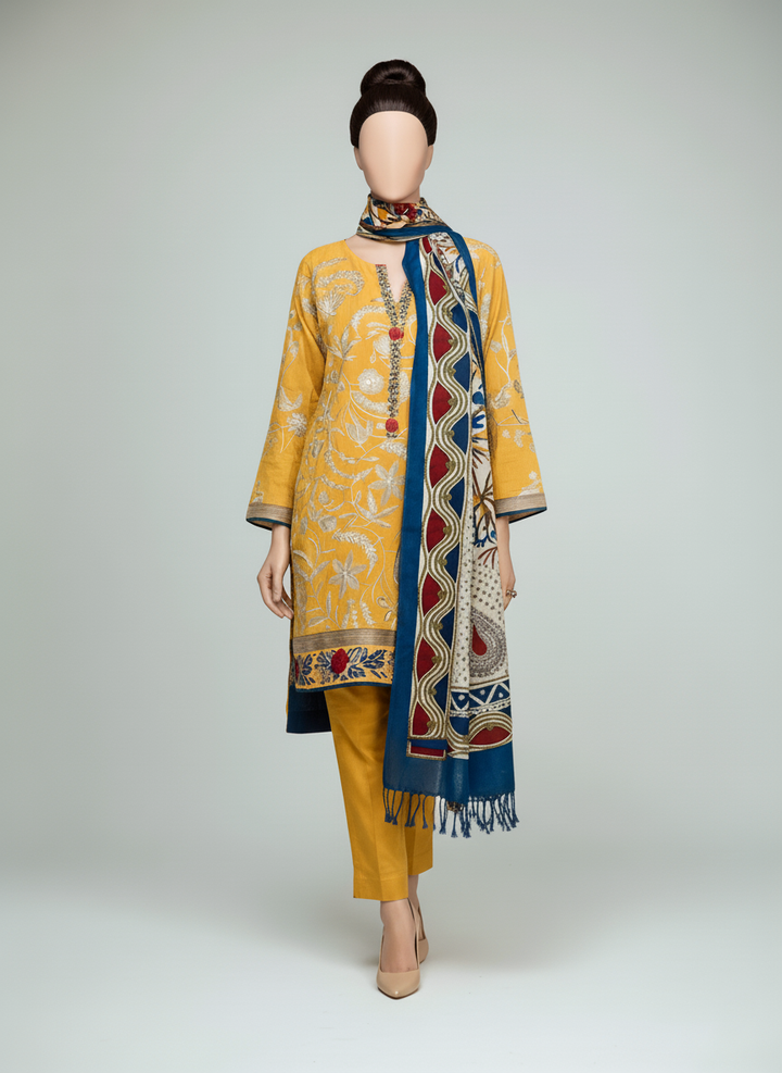 Grace Z-(W538)- Stitched Embroidered 3pc khaddar dress With Printed shawl.