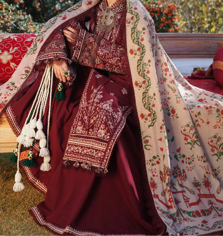 Grace Z-(W691) - Stitched Embroidered 3pc Marina Dress With Printed Shawl