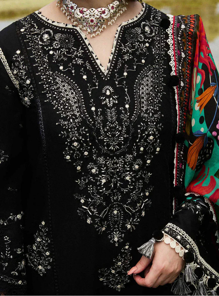 Grace Z-(W710) - Stitched Embroidered 3pc Marina Dress With Printed Shawl
