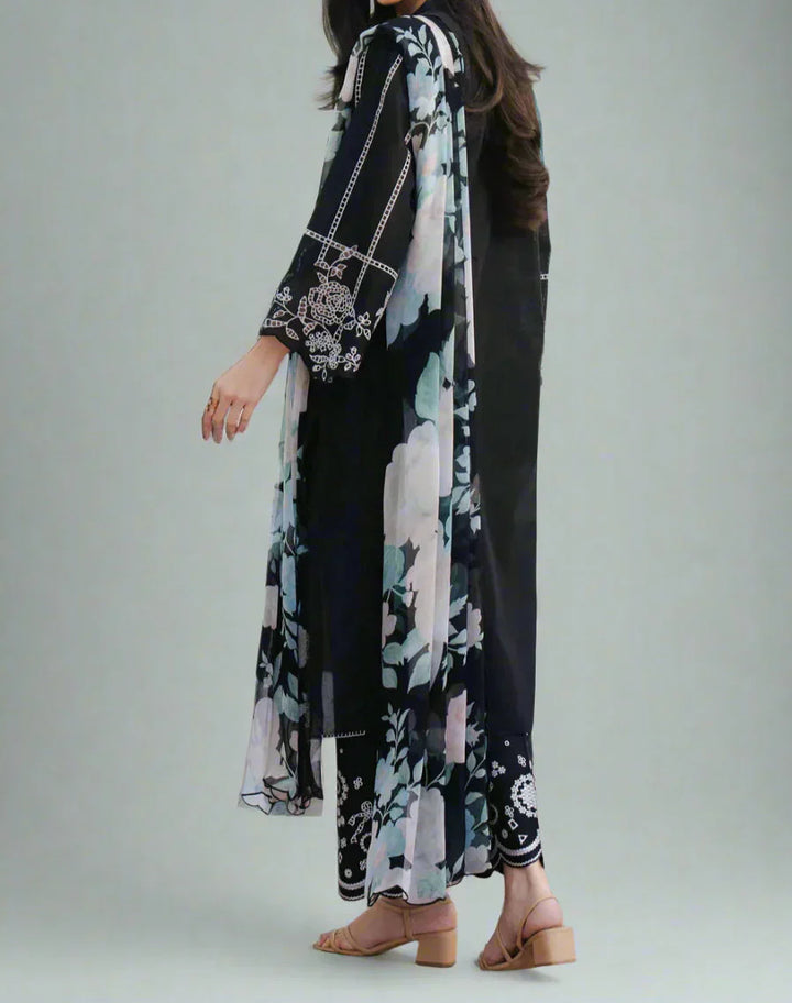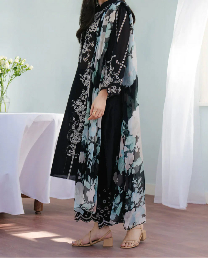 Grace Z-(W740) - Stitched Embroidered 3pc Marina Dress With Printed Shawl.