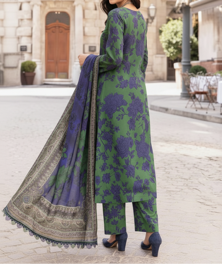 Grace Z-(W821 ) - Stitched Digital Printed 3pc Karandi Dress With Digital Printed Karandi Shawl.