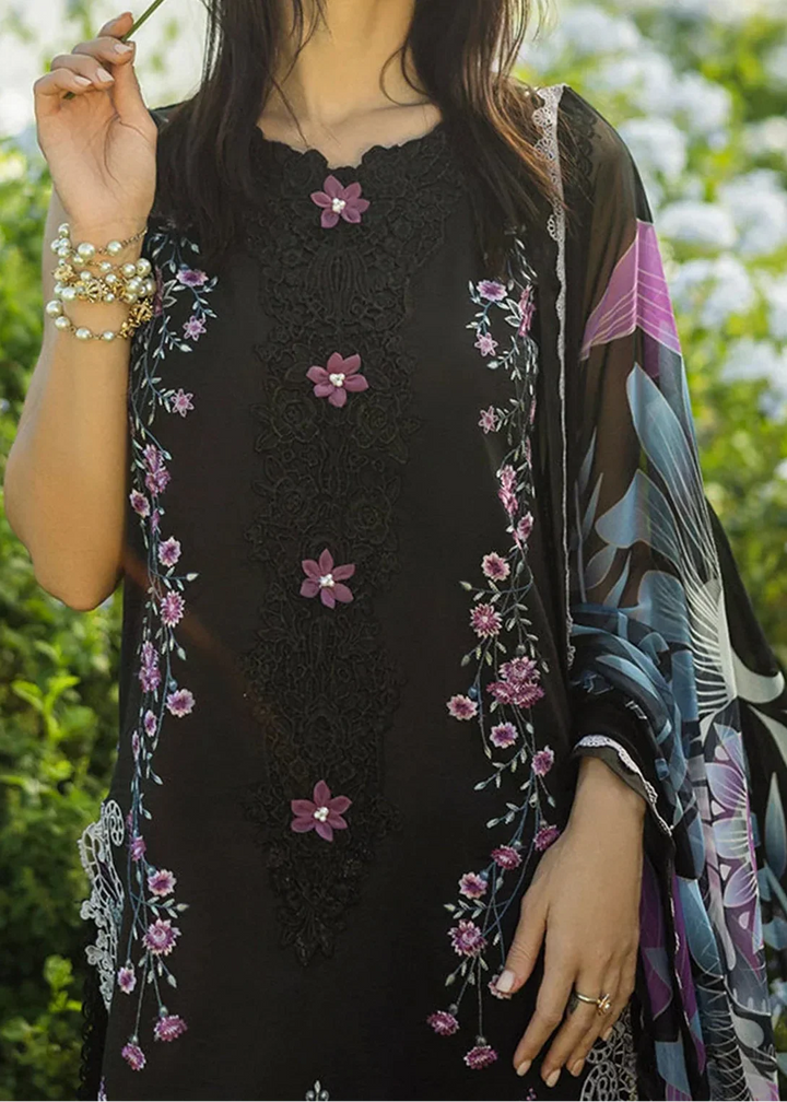 Grace Z-(W855) - Stitched Embroidered 3pc Marina Dress With Printed Shawl.