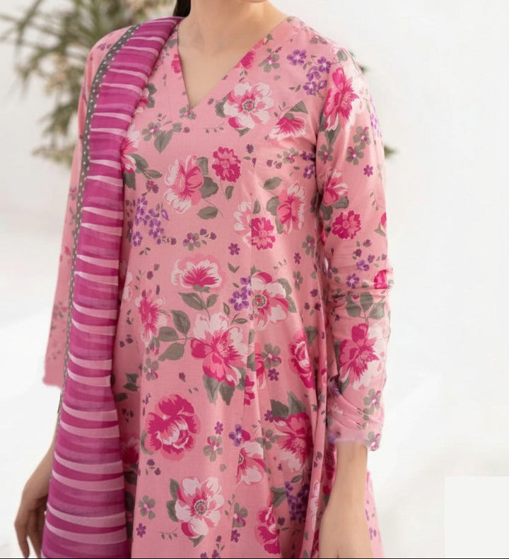 Grace Z-(W866) - Stitched Digital Printed 3pc Karandi Dress With Digital Printed Karandi Shawl.