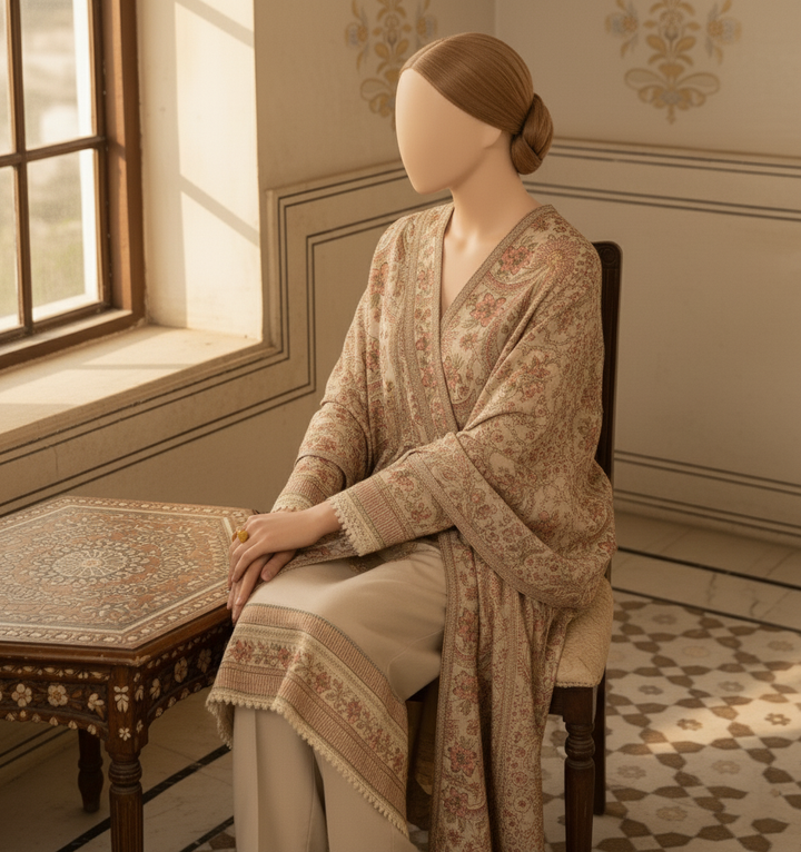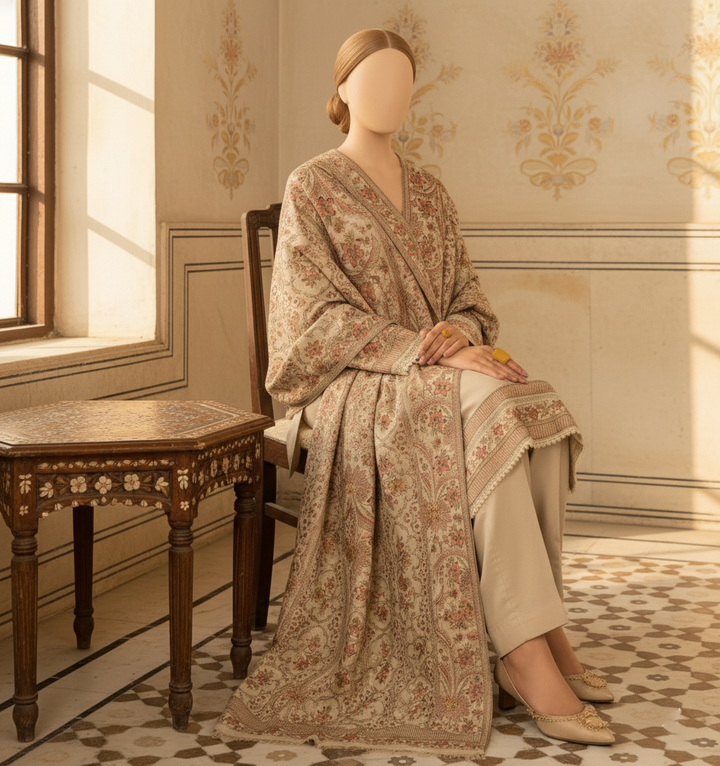 Sarinnah Premium D40-Luxury Formal Heavy Embroidered Karandi Shawl.