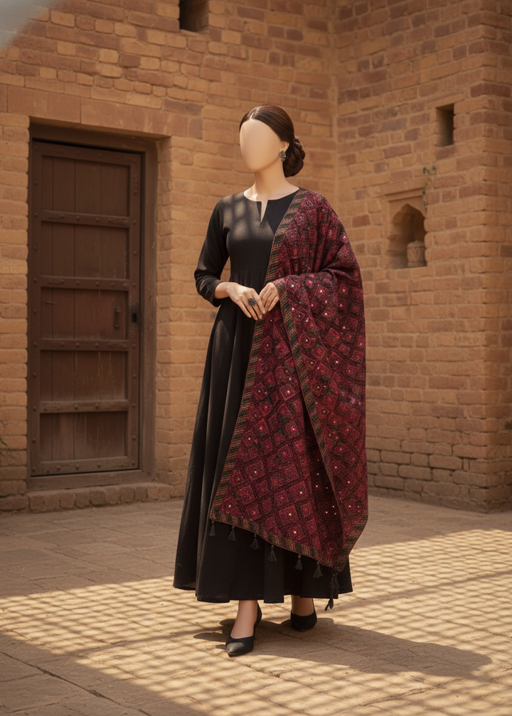 Sarinnah Premium D74-Luxury Formal Heavy Embroidered Karandi Shawl.